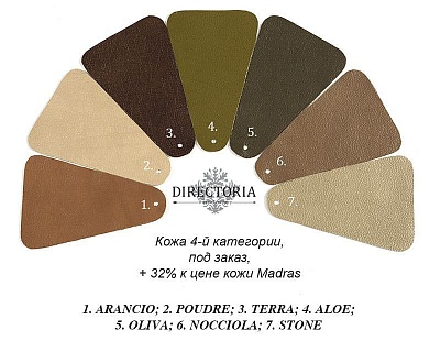 Коллекция включает в себя кожи с матовой однотоновой поверхностью – Madras , двутоновой – Madras Bicolore и жемчужно-перламутровым блеском – Madras Perlato. Толщина кож в стандартной точке – 0,9-1,1 мм, тиснение среднезернистое – «Madras»