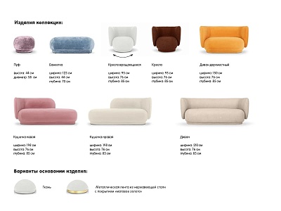 - Смелые объемы, плавные линии привнесут в интерьер динамику, свежесть, пластичность. Закругленные элементы, фактурные обивки, естественные оттенки создают атмосферу комфорта и дружелюбного притяжения. Высокие спинки, плавно перетекающие в подлокотники, обеспечивают эргономичную поддержку и чувство безопасности, уединения.