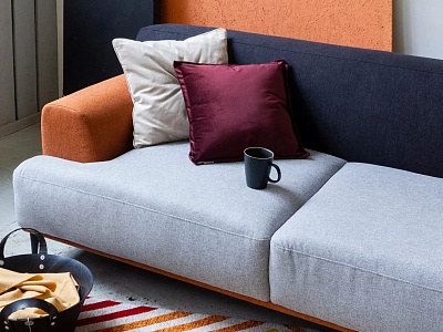 - «Фишка» линейки — сочные цветовые сочетания в стилистике колор-блокинга. Оттенки могут быть темными, светлыми, играть на контрасте или едва заметно сменять друг друга, что поддержит небанальный характер пространства.