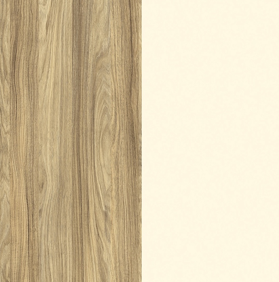 - сочетание глянцевых МДФ вставок и ЛДСП с ярко-выраженной древесной текстурой