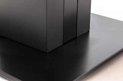 Опоры со встроенными кабель каналами выполнены из тамбурата, который опирается на металлическую черную матовую основу размером 70x70 см.