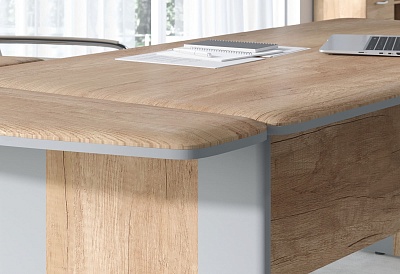 Коллекция DIONI – это стильный, современный и эргономичный кабинет, который обеспечит каждому руководителю по-настоящему комфортную работу. Удобная посадка за столом (без острых углов!) и закругленная форма всей мебели в коллекции дополнена эффектными деталями. Особую изюминку добавляют двуслойные столешницы или составные опоры столов.