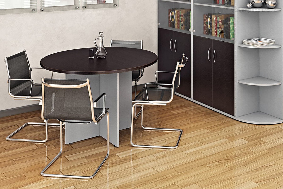 Столы для переговоров из коллекции Riva – мебель эконом сегмента. Несмотря на простое исполнение, их назначение не ограничивается стандартным функционалом.