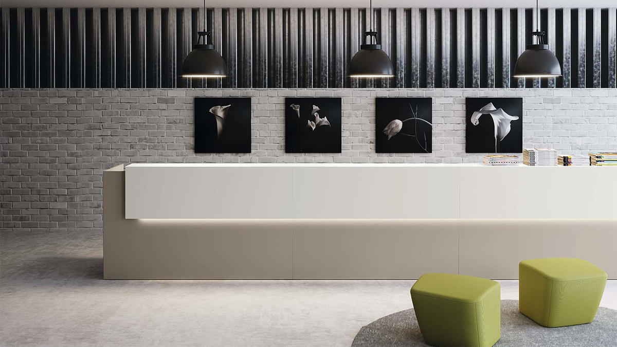 - РЕСЕПШН ДЛЯ СОВРЕМЕННОГО ОФИСА. Point - это современные модульные стойки ресепшн для администраторов, секретарей и офис-менеджеров, разработанные командой итальянских дизайнеров Si Design. В коллекцию офисной мебели для приемных Point входят одинарные, двойные, центральные и угловые модули, из которых собираются разные по длине конструкции стоек из ДСП, дополненные полками и светодиодной подсветкой.